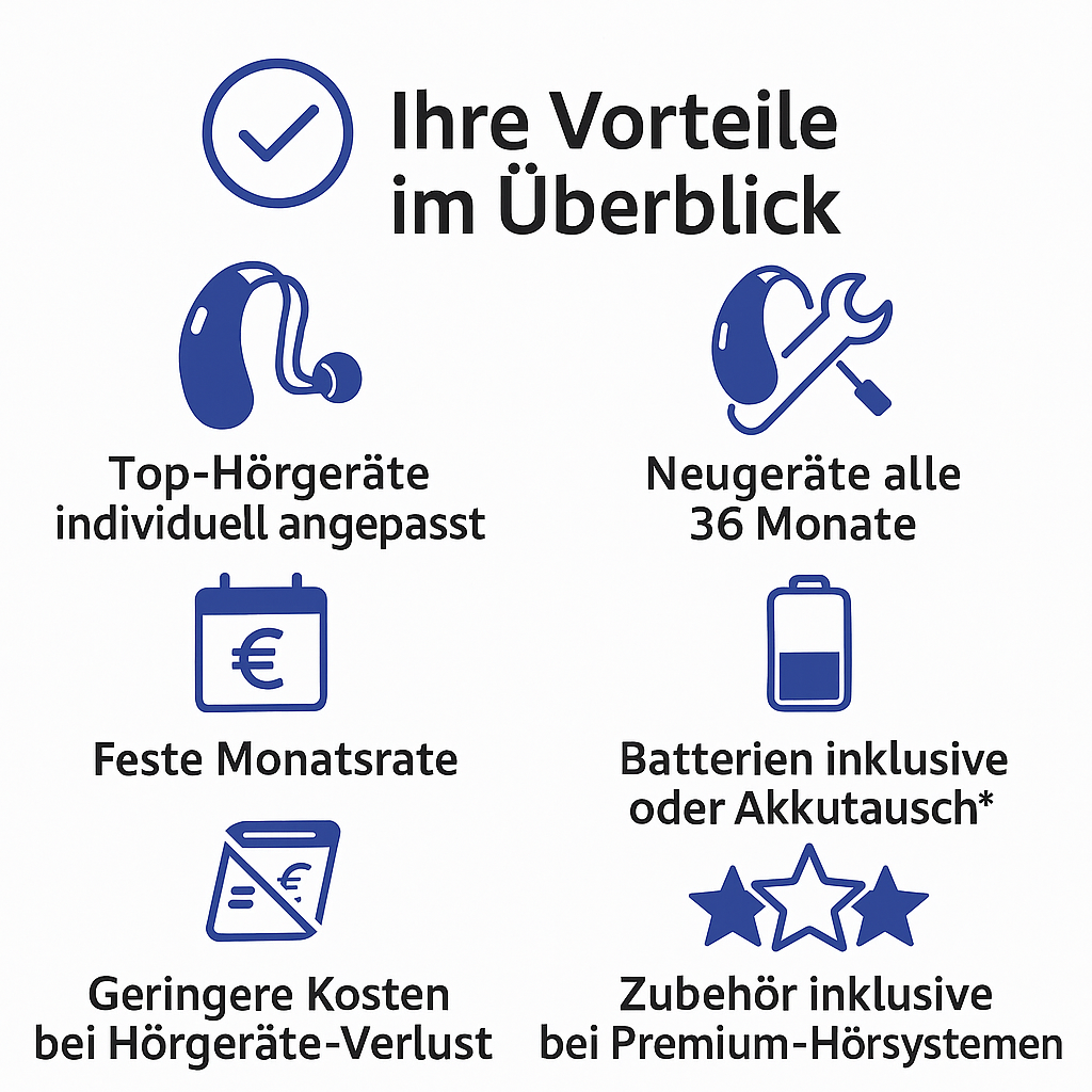 Mit dem Grellmann PremiumAbo erleben Sie modernste Hörtechnologie, umfassenden Service und volle Kostenkontrolle – ganz ohne hohe Einmalzahlung.